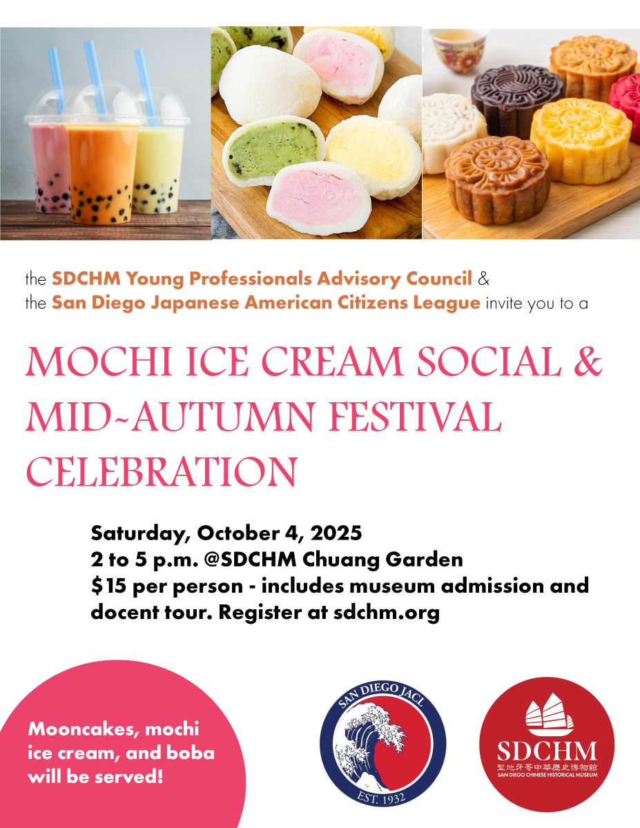 Celebrate the fall and enjoy delicious treats with us! Hosted by the Young Professionals Advisory Committee in collaboration with the San Diego Japanese American Citizens League, this event will have mooncakes, boba, and mochi ice cream for all. Yummm!